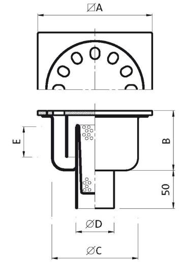 Sumidero sifónico sanitario fabricados en acero inoxidable para instalación en baños. Fabricación en AISI304 ó 316. Distintas posibilidades de reja de acero inoxidable