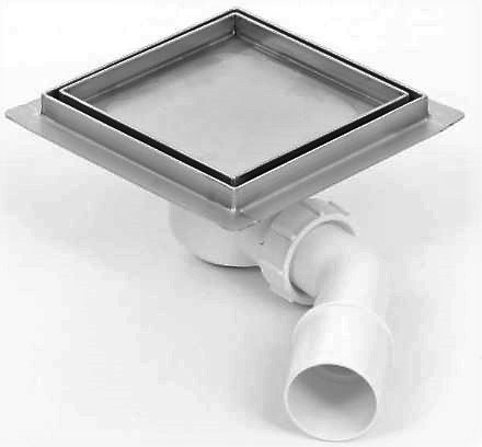 Sumideros sifónicos inox de salida horizontal con marco cuadrado y reja redonda. sumidero de 100×100 y 150×150 mm